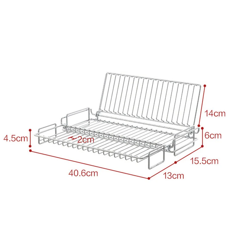 Bendras dydis yra 40,6 cm / 15,98 colio, pagrindinio korpuso aukštis yra 6 cm / 2,36 colio, vertikalaus krašto aukštis yra 14 cm / 5,51 colio, šoninio išplėtimo plotis yra 15,5 cm / 6,1 colio, drenažo tarpas yra 2 cm / 0,78 colio. Ši konstrukcija tinka daugeliui buitinių vienos / dviejų angų kriauklių ir užtikrina greitą vandens tekėjimą, išvengiant vandens kaupimosi.
